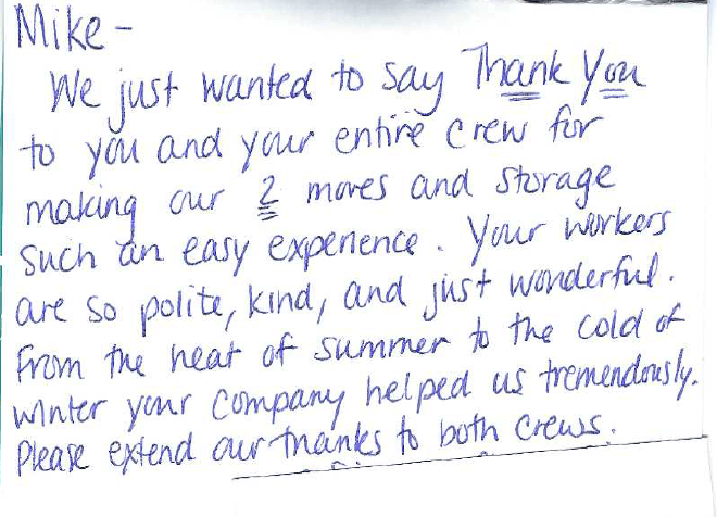 “We just wanted to take a minute to talk to you about your moving crew that helped us move,