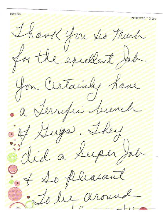 So anyways, THANK you and Thank your boys for me, they really did a fantastic job.”